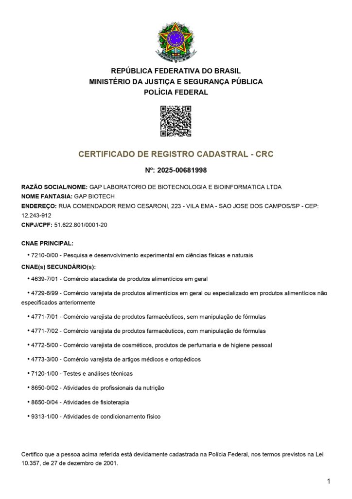 CERTIFICADO DE REGISTRO CADASTRAL - CRC